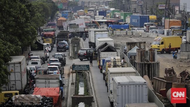 Pantauan CNNIndonesia.com, pedemo duduk di separuh badan jalan sehingga terjadi penyimpitan. Akibatnya kemacetan mengular.