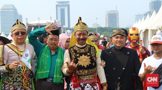 "Ya, karena itu yang dijadikan kostum ketua umum, superhero lokal. Karena superhero lokal itu di atas Thanos, Superman, Spiderman, dan sebagainya," ujarnya usai deklarasi di Monas, Jakarta, Minggu (23/9).
