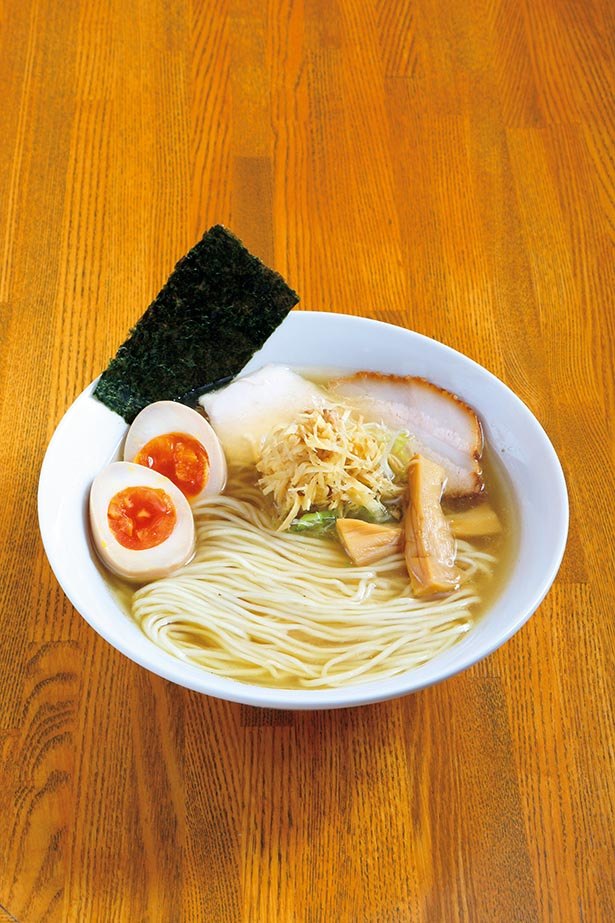 おすすめは「有精卵の味玉しょうがそば」(935円)。国産丸鶏を中心に、豚の背ガラや6種類の煮干しなどの魚介を加えた芳醇なスープが自慢。自家製のまろやかな塩ダレに漬け込み、生姜が効いて体も温かくなる!自家製麻辣油などで味付けた「辛味ネギそば」(880円)も人気だ。
