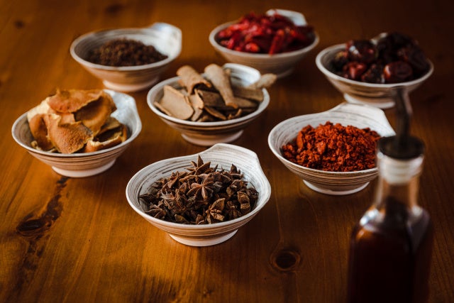 ホール唐辛子、一味唐辛子、山椒、みかんの皮、シナモン、八角など8種類のスパイスを独自にブレンド。山椒やシナモンが加わることで、ピリッとした辛さだけではない、爽やかなラー油に仕上がっています。