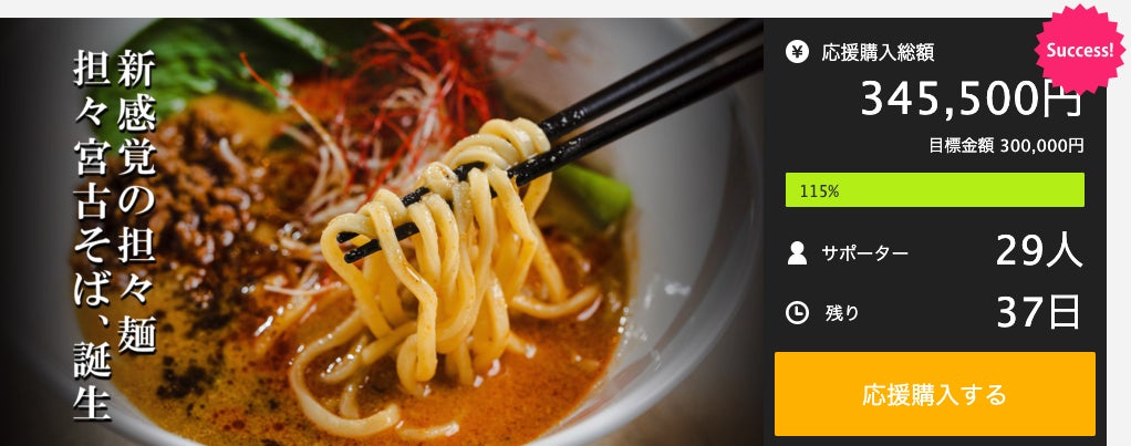 からの記事と詳細 ( 【めんば〜る】Makuake公開わずか1日で目標金額100%達成!スープ職人が作る坦々宮古そば限定セットとコース販売 - PR TIMES )